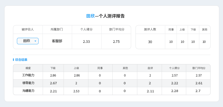 老師是一個學校的靈魂,影響著所有被教育的學生,所以一個老師是否優(yōu)秀至關(guān)重要??扇绾卧u估一個老師是否優(yōu)秀?學生如果對某些老師的教育方式不甚滿意,但礙于師生關(guān)系無處表達,只能私下吐槽。如何給學生提供表達真實想法的渠道?這兩點對學校而言都是至關(guān)重要的,但是如何做到?問卷星360度評估系統(tǒng)給您答案: 首先 需要提供一個合適的方式讓所有的學生能夠表達自己對老師教學方式的滿意度,通過學生的實際反饋可以讓老師們知道自己的教學弱點,從而進行改進。與此同時,老師們的互評也能多方面體現(xiàn)被評者的優(yōu)缺點,相互取長補短,共同進步。