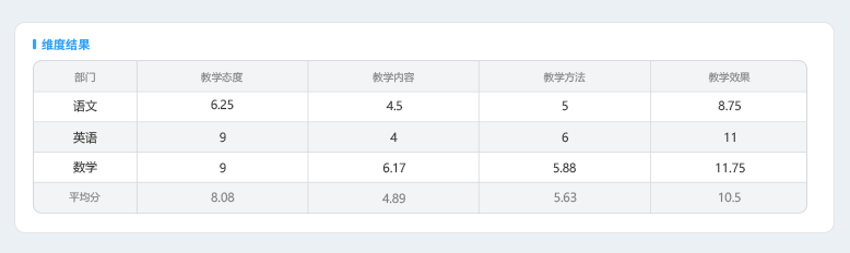 使用問卷星360度教學評估工具。以年級為單位創(chuàng)建360度評估問卷,設(shè)置好相應(yīng)的維度評估要點(例如教學態(tài)度、教學內(nèi)容、教學方法等),通過對這些通用維度的評估可以從多個方面了解每個老師的教學情況。不僅如此,問卷星還支持根據(jù)教學科目給老師分組,按分組結(jié)果查看每個教學科目的評估結(jié)果,從而了解學生對每個學科科目的喜愛程度。同時,問卷星360度評估使用的是一對多批量進行評估,相對傳統(tǒng)的一對一評估模式可大量節(jié)省答題者的作答時間。